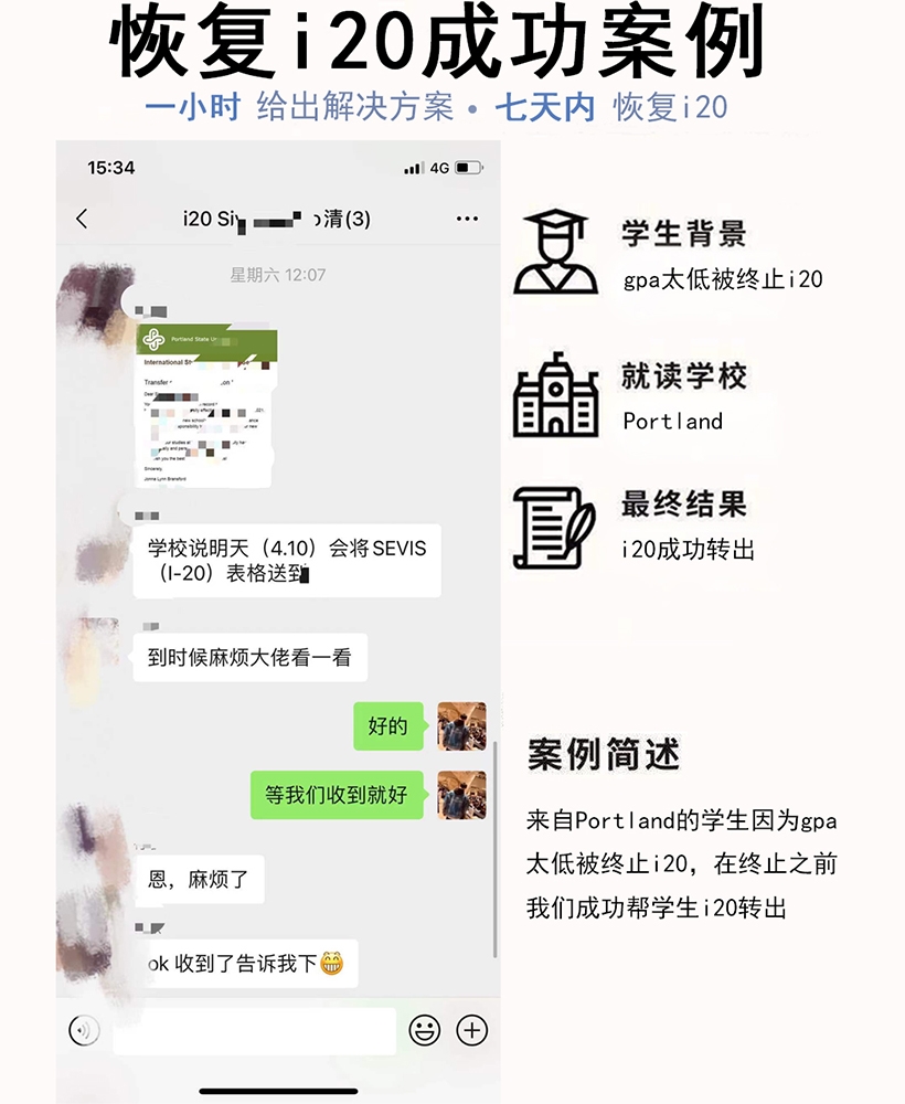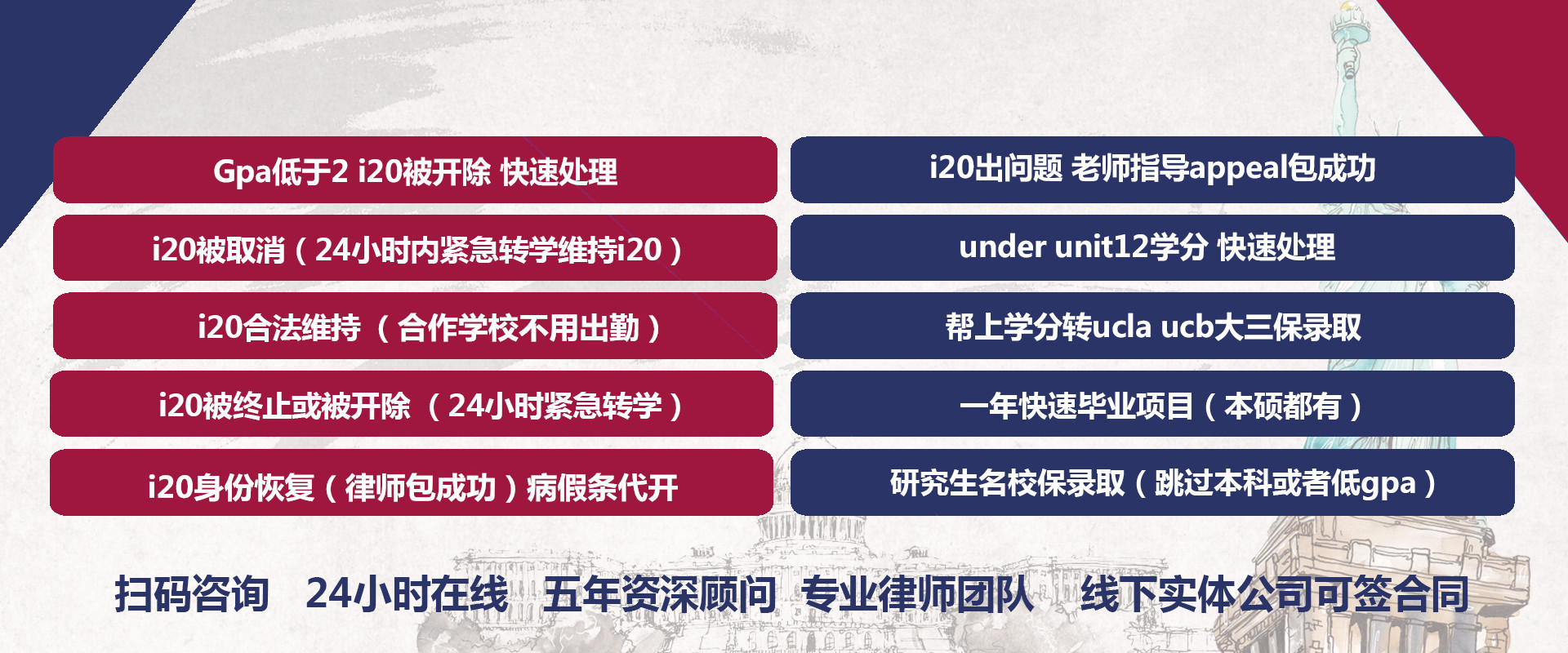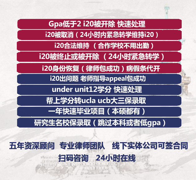 一天内安排到合法常规的学校 不需要签到 也不会被移民局查(学校里面有真实的学生在上课)三日内发i20!!!
